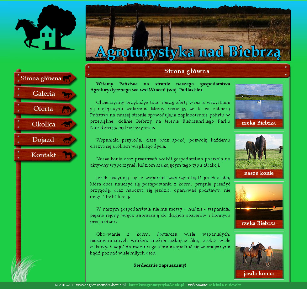 Agroturystyka Nad Biebrzą. Strona oparta o czysty html.