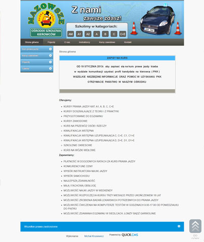 Strona Nauki Jazdy Mazowsze z Mińska Mazowieckiego. Strona oparta o system Quick CMS.